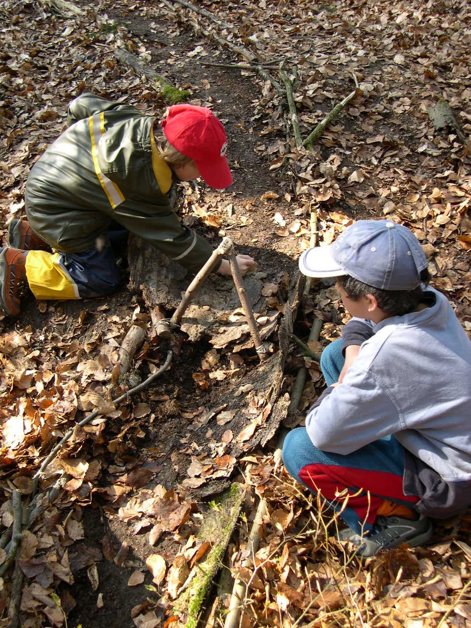 Im Wald rollt eine Kugel auf vielfältigen Wegen und löst überraschende Effekte (fallen, drehen, schwingen, klingen...) aus. Wir verwenden Äste, Rinden, Astgabeln, Steine, Erde und als einziges Hilfsmittel Schnur. Durch zusammenbinden, aufschichten, aufhängen, flechten, einkerben, einstecken, einbohren und ausnützen der natürlichen Gegebenheiten entsteht unsere Kugelbahn. Am Schluss wird getestet: Welche Kugel rollt wohl am weitesten?
